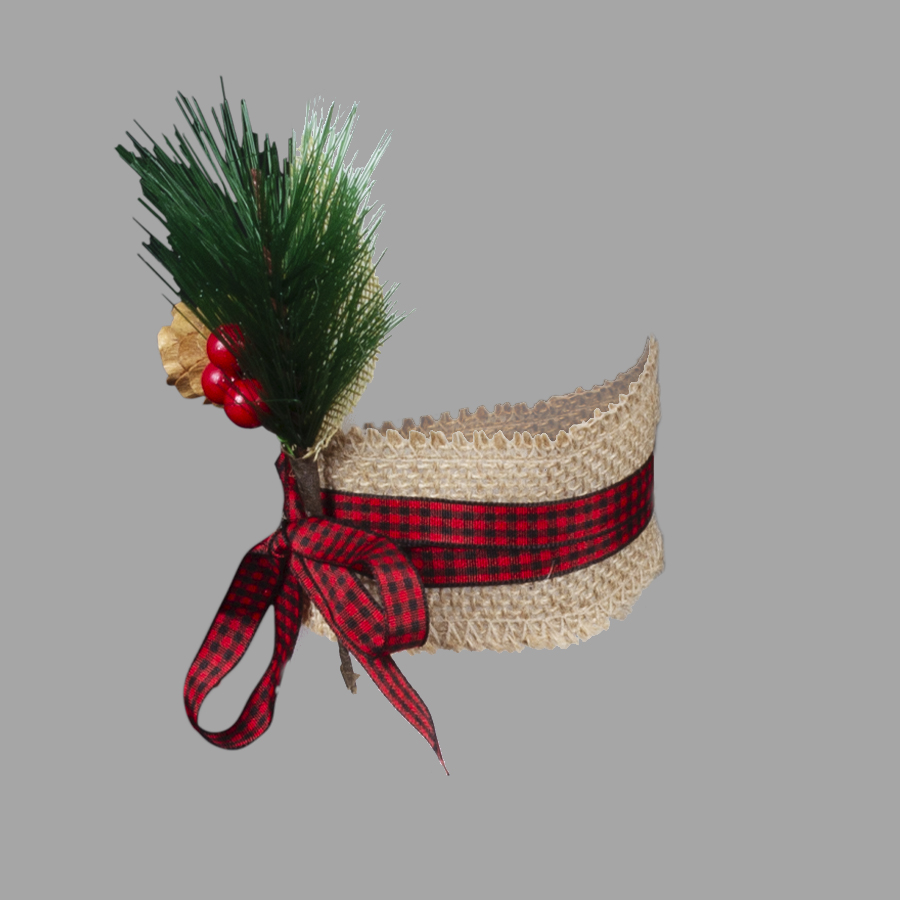 Adorno decorativo de yute, cinta y pino, para vela B52.