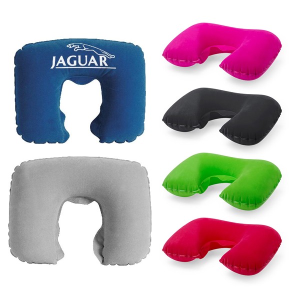 Almohadilla inflable para cuello de suave antelina en variada gama de vivos colores.