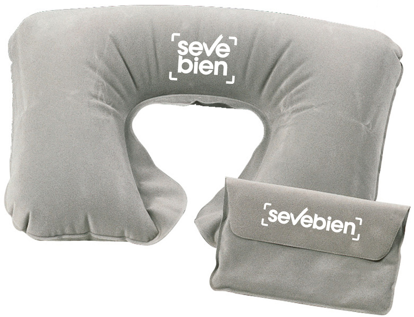 35 x 23 x 9 cm. (inflado). 17,6 x 12 cm (sobre). Tela flock símil terciopelo. Almohadón inflable con funda.