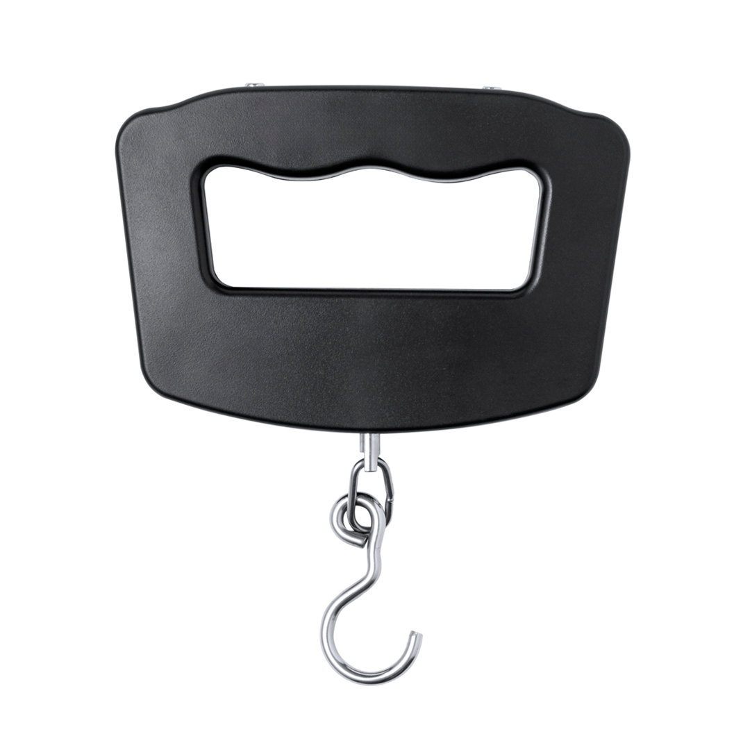 Báscula digital de mano portátil. De diseño ergonómico para adaptarse a la mano y facilitar la visualización de su pantalla LCD. Con botón ON/OFF, función TARA, y varias unidades de medida: gramos (g), kilogramos (kg), libras (lb) y onzas (oz). Con gancho metálico para facilitar el pesaje de diversos objetos y un peso máximo de 50kg. Incluye instrucciones en español e inglés y está alimentada por 2 pilas AAA (no incluidas). Presentada individualmente en caja de diseño kraft. Max 50 Kg. 2 Pilas AAA No Incluidas