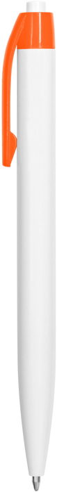 Plástico. Bolígrafo con cuerpo y pulsador de color blanco y clip en color. Tinta negra.