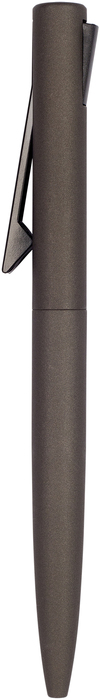Metal. Cuerpo en metal, parte superior plástica con detalle de color negro. El clip funciona como pulsador. Ideal para imprimir en tampografia. Tinta azul.