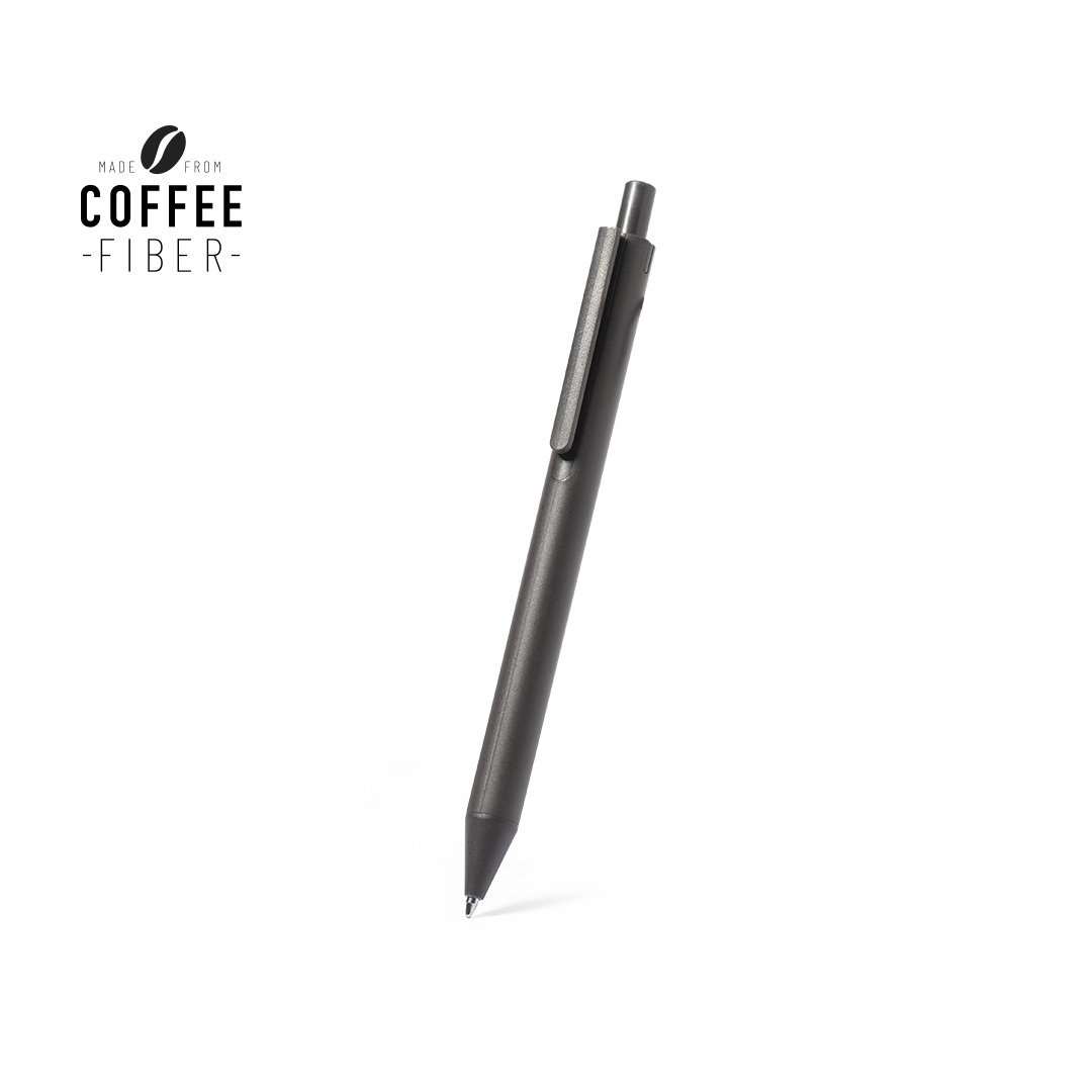 Bolígrado de línea nature, con cuerpo fabricado en fibra de café y detalles a juego. De mecanismo pulsador y en tinta azul, con distintivo fibra de café en el cuerpo. La fibra de café es una solución circular que se obtiene de la utilización de los residuos producidos en la obtención del café. Una alternativa sostenible que favorece la reducción del uso de plásticos, ahorrando energía en su proceso de fabricación y contribuyendo al cuidado del medio ambiente.