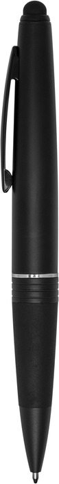 Metálico. Bolígrafo touch. Cuerpo color negro mate, electroplateado en parte superior. Clip metálico negro brillante, detalle en color plata. Apertura giratoria.