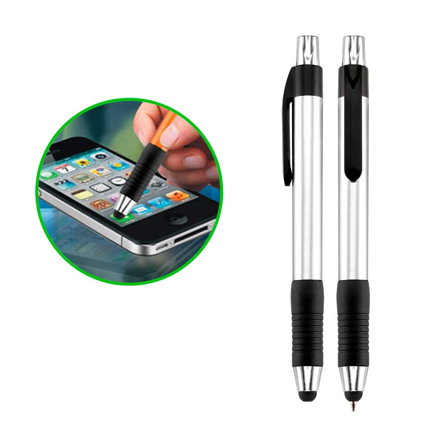 Bolígrafo "Trek" con cuerpo de color metalizado y puntero touch-screen para pantalla táctil. Escritura azul.