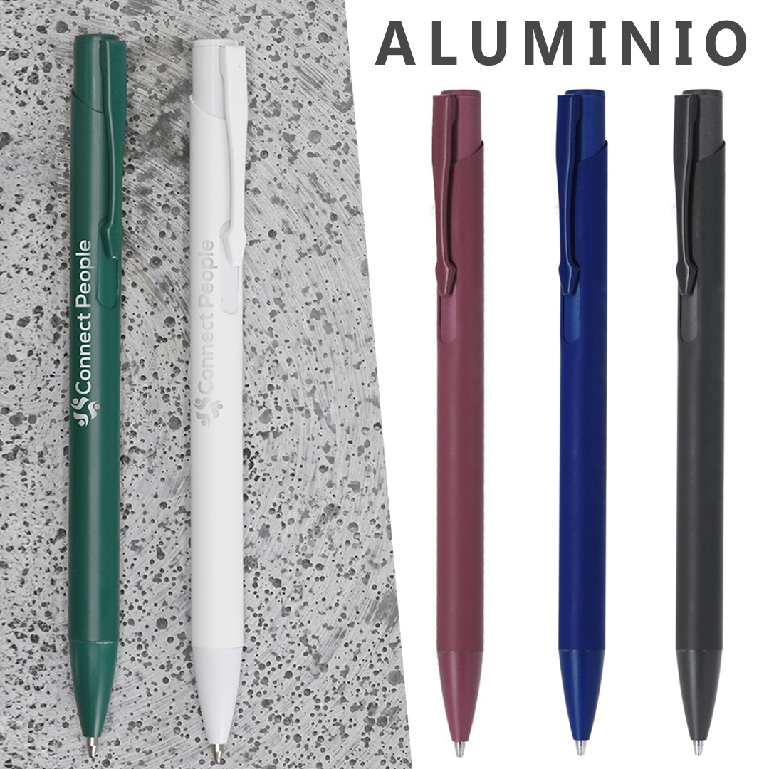 Elegante bolígrafo de aluminio con mecanismo pulsador. Cuerpo y clip en resistente aluminio de acabado mate, con cartucho jumbo y en tinta azul. Especial para marcaje en láser. Carga Jumbo