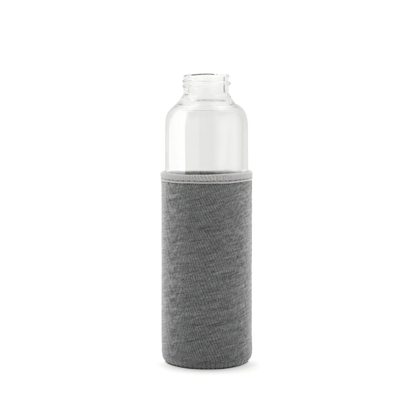 Botella de vidrio borosilicato con funda protectora de neopreno. Tapa a rosca con cinta, para facilitar el agarre y transporte. Capacidad de 550 ml. Reutilizable. Ideal para tus actividades al aire libre o uso diario. Incluye Gift Box confeccionada en cartulina Kraft.