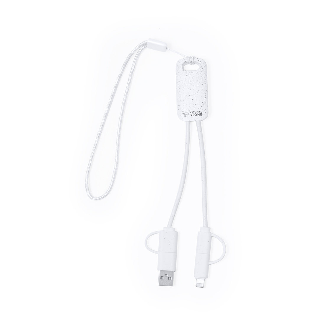 Cable cargador fabricado a partir de extractos de piedra natural en combinación con resistente ABS. Con conexiones de entrada Tipo C/USB y salidas Tipo C, Lightning y Micro USB. 5V DC 2.4A. Presentado en caja individual de diseño kraft. Fabricado con extractos de piedra natural, ayudando a la reducción del uso de plásticos, además de proporcionar un acabado suave y resistente. Conexión Micro USB, Tipo C y Lightning 5V DC 2.4A