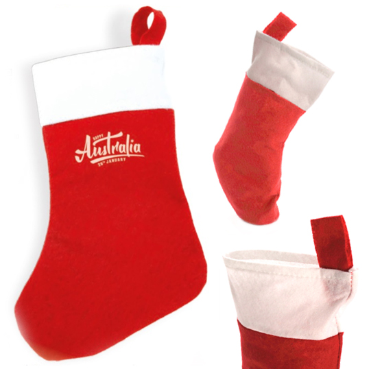 Calcetín navideño de gran capacidad en tradicional combinación de colores navideños y con cinta para colgar.