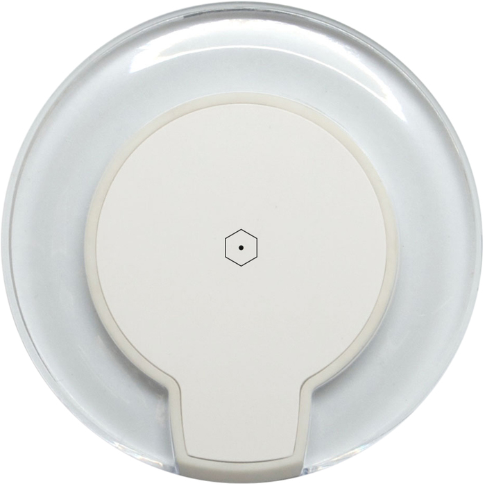 Ø 10 x 1 cm. Plástico. Cargador inalámbrico, apoyando el celular comienza a cargar, es necesario que el cargador esté enchufada para que pueda funcionar y darle carga al celular. Una entrada mini USB. Es importante sacar la funda para facilitar la carga. Presentación en caja de regalo.