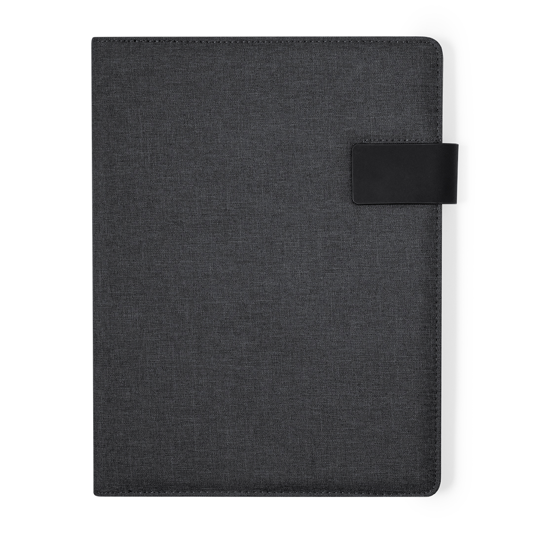 Práctica carpeta fabricada en RPET 600D. Con un interior eficiente que incluye compartimentos para 4 tarjetas, 3 bolsillos elásticos para dispositivos móviles, y un amplio espacio para folios. Este organizador también presenta un práctico soporte para bolígrafos y un bloc de notas con 20 hojas a rayas. Puede mantenerse cerrado de manera segura gracias a su solapa imantada. Disponible en elegantes colores y presentado individualmente en bolsa reciclada. El material RPET se elabora a partir de plástico reciclado, para así fomentar la reutilización de residuos plásticos y ayudar a la sostenibilidad del planeta. Bloc 20 Hojas