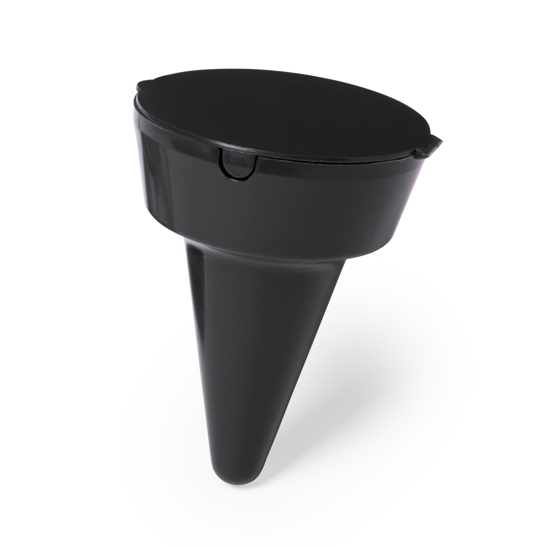 Resistente cenicero portátil con cuerpo acabado en vivos colores y pincho de anclaje.