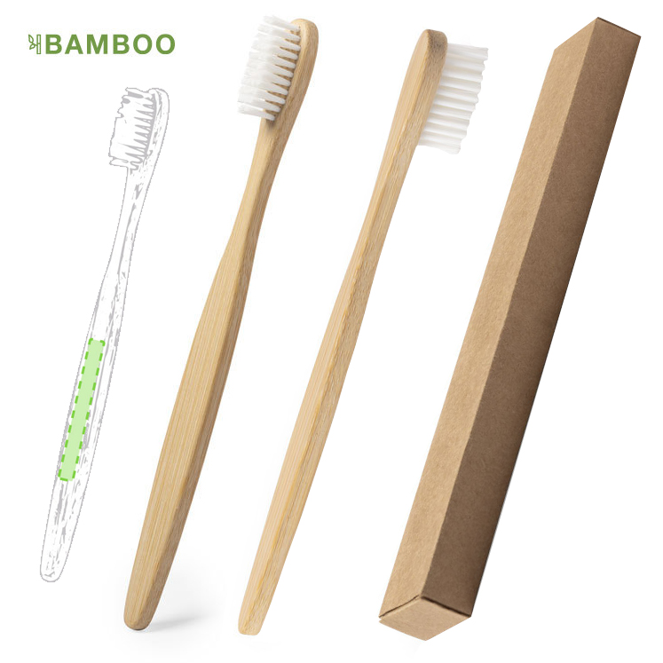 Cepillo de dientes de línea nature. Fabricado en bambú y presentado en caja individual de diseño eco.