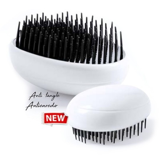 Cepillo de diseño minimalista con sistema antienredo y púas de diferentes longitudes. Antienredo