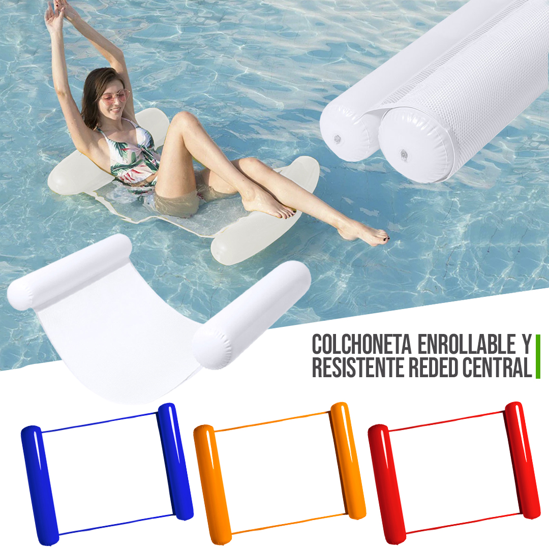 Original colchoneta con extremos hinchables en resistente PVC. Enrollable y con resistente redecilla central de 80x70 cm en poliéster de color blanco. Con plegado especial para fácil impresión y disponible en variada gama de colores. Plegado Especial para Impresión