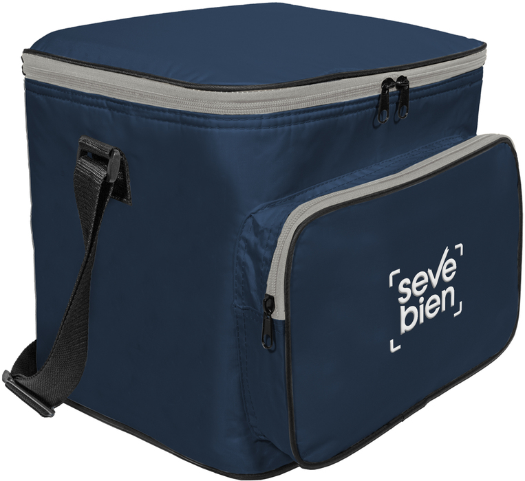 28 x 25 x 25 cm.. Capacidad 17,5 litros. Poliéster 420D. Interior recubierto de aluminio. Exterior con bolsillo y cierre que permite guardar pequeños objetos. Tira con regulador de tamaño para poderla transportar cómodamente.
