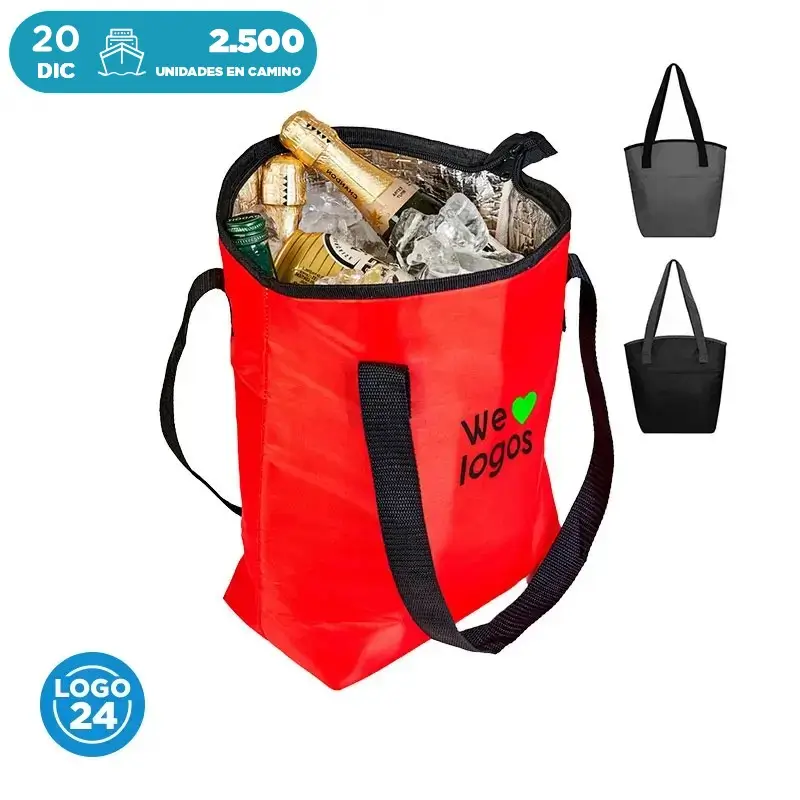 Cooler de Polyester 420D con compartimiento principal superior y bolsillo frontal. Posee interior en Aluminio y PE foam. Medidas: 37 x 24 x 13 cm. Capacidad: 11,5 Litros. LOGO24: Producto disponible para el servicio de logueo en 24 horas respetando unidades mínimas de logueo y 200 unidades máximas. Consultar términos y condiciones del servicio.