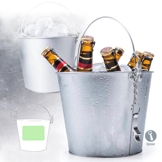 Cubo metálico de 6l de capacidad con asa y abridor de aluminio con cadena incluido. 6 L. Abridor Incluido
