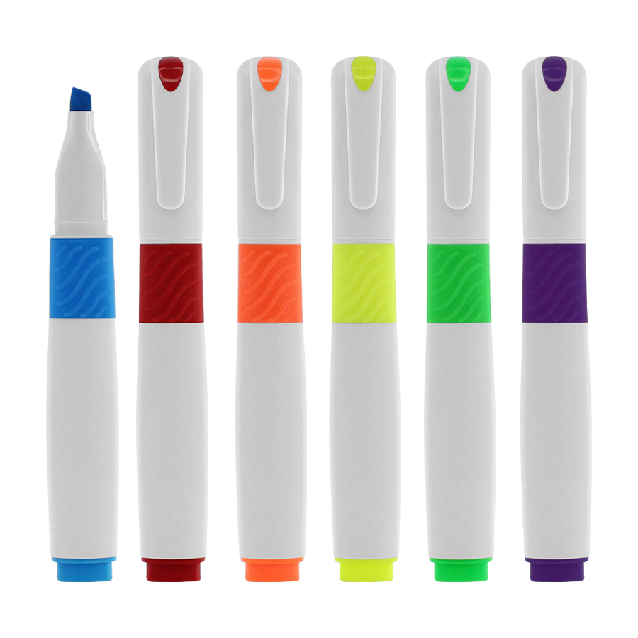 Destacador "Soft", cuerpo plástico blanco, terminales de color flúor.