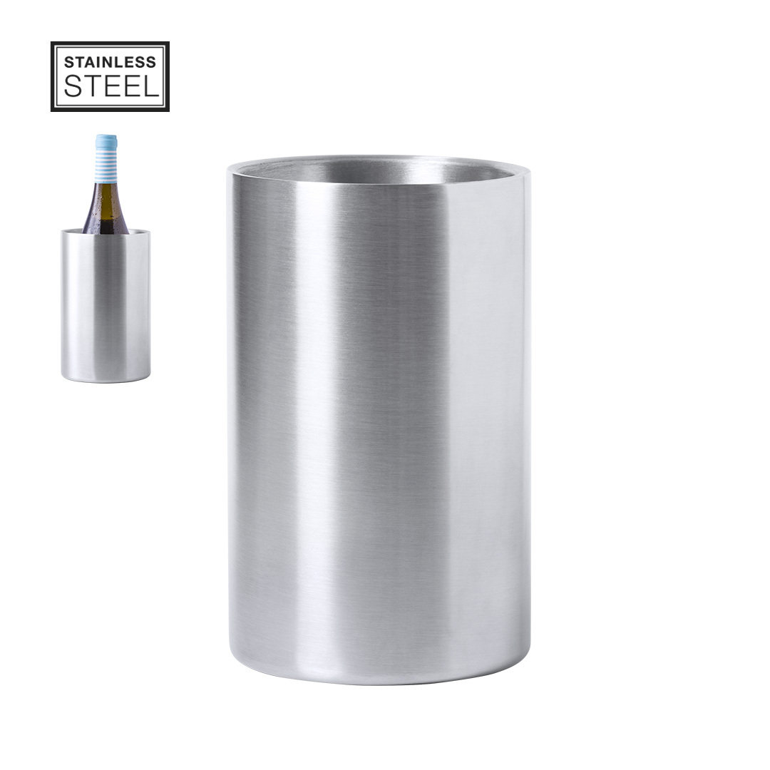 Enfriador, fabricado en acero inox de acabado mate para 1 botella. Presentado en atractiva caja de diseño.