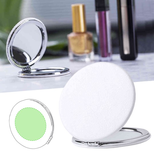 Espejo plegable en elegante acabado de polipiel blanca. Con dos espejos interiores: 1X y aumento 2X. 1 Aumento 2X