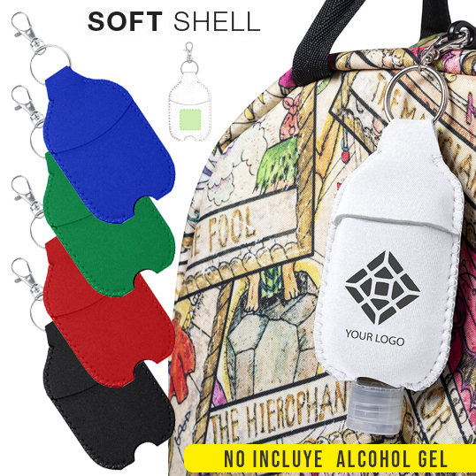 Funda portagel adaptable en soft shell. Disponible en variada gama de colores, con anilla y mosquetón de fijación metálicos. Ideal para nuestras referencias 6571 y 2587 Adaptable