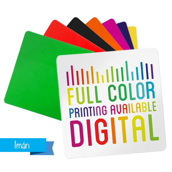 Imán de 6x6cm con superficie brillante en variada gama de vivos colores.