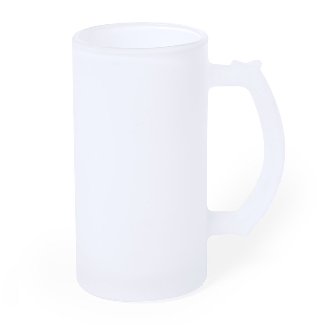 Jarra de cristal de acabado mate. De 500 ml de capacidad y con cómoda asa. Especialmente diseñada para la sublimación. Apta para lavavajillas, microondas y presentada en caja individual kraft. 500 ml