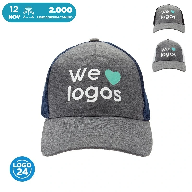 Jockey de 6 gajos con visera. Realizado en jersey y algodón con cierre de velcro. LOGO24: Producto disponible para el servicio de logueo en 24 horas respetando unidades mínimas de logueo y 200 unidades máximas. Consultar términos y condiciones del servicio