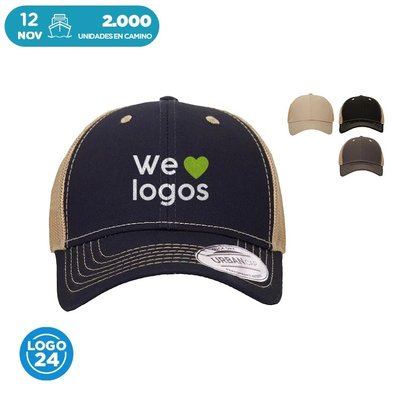 Jockey de 6 gajos con visera. El dorso del del gorro cuenta con diseño de tela de red de color kaki y ajuste con broche. Posee un sticker metalizado en la visera. LOGO24: Producto disponible para el servicio de logueo en 24 horas respetando unidades mínimas de logueo y 200 unidades máximas. Consultar términos y condiciones del servicio