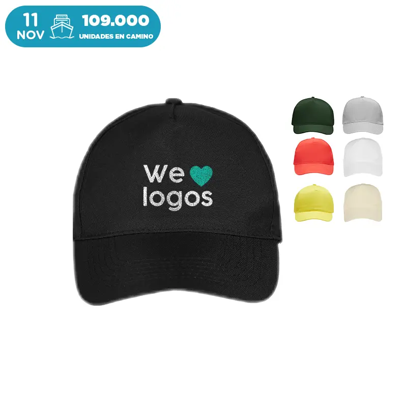 Gorro de 5 paneles 100% Polyester con cierre con velcro. Diámetro 58cm. Próximos arribos: las fechas, y cantidades de entregas son estimativas y están sujetas a cambios.