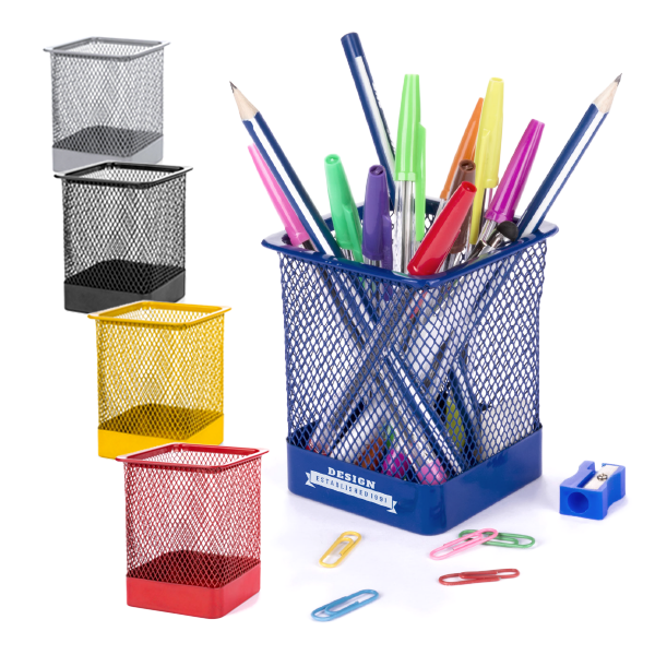 Lapicero de malla metálica en acabado brillante y vivos colores. Presentado en caja individual plateada.