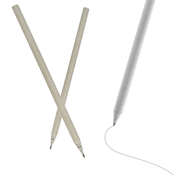 Lápiz de papel de periódico reciclado y resistente cuerpo en color natural. Con mina negra y punta afilada.