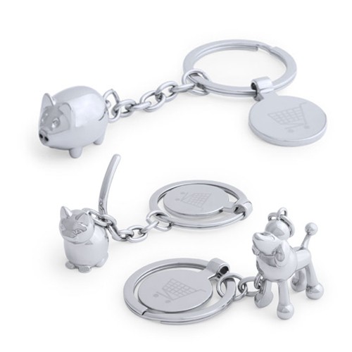 Llavero moneda metálico en divertidos diseños 3D de animalitos. Con moneda extraíble.
