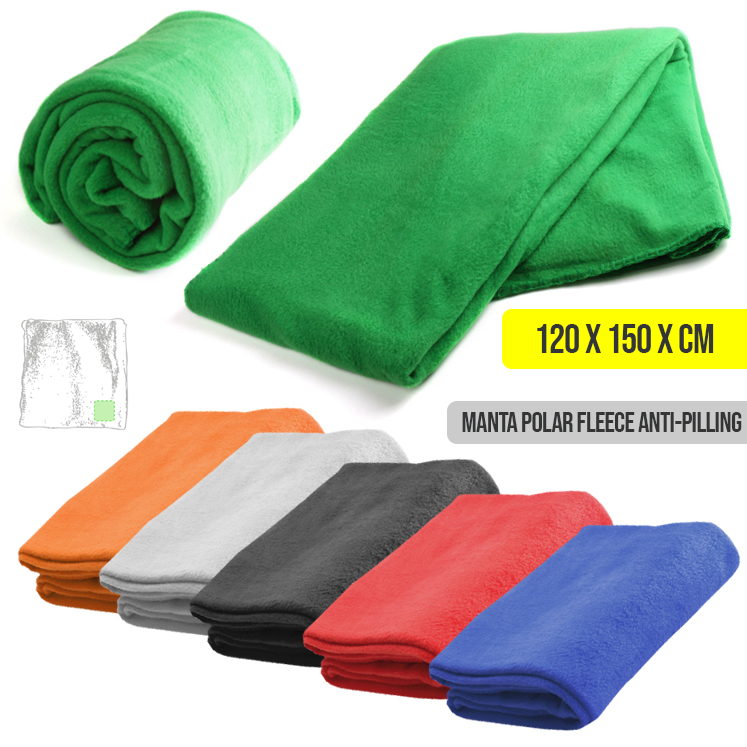Manta de 120x150cm en variada gama de vivos colores. En material polar fleece anti-pilling de 180g/m2. Anti-Pilling