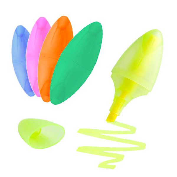 Marcador fluorescente diseño minimalista en divertidos colores, con cuerpo y capucha en acabado translúcido.