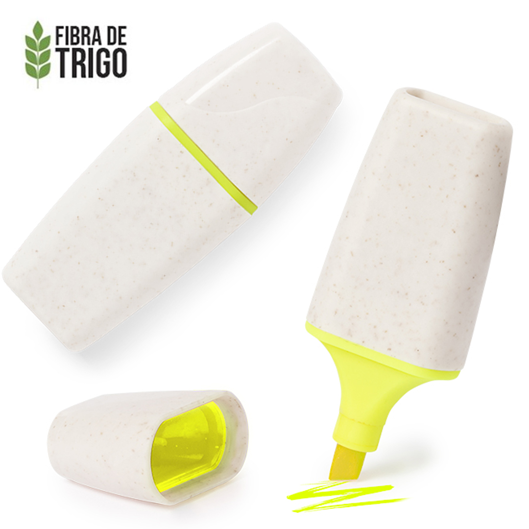 Original y práctico marcador fluorescente fabricado en caña de trigo y ABS. Marcador en color amarillo fluorescente.La caña de trigo fomenta la utilización de materias primas naturales, reduciendo así las emisiones contaminantes.