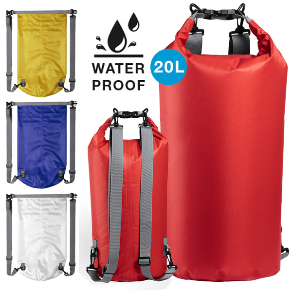 Mochila impermeable de gran capacidad (20l), fabricada en resistente ripstop. Con cierre de seguridad, asa con hebilla de ajuste, mosquetón, y cintas ajustables. Disponible en variada gama de colores brillantes. 20 L. Impermeable