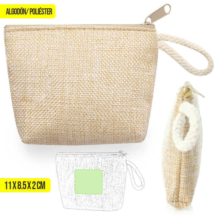 Monedero en algodón/poliéster, con asa a juego y cierre de cremallera.