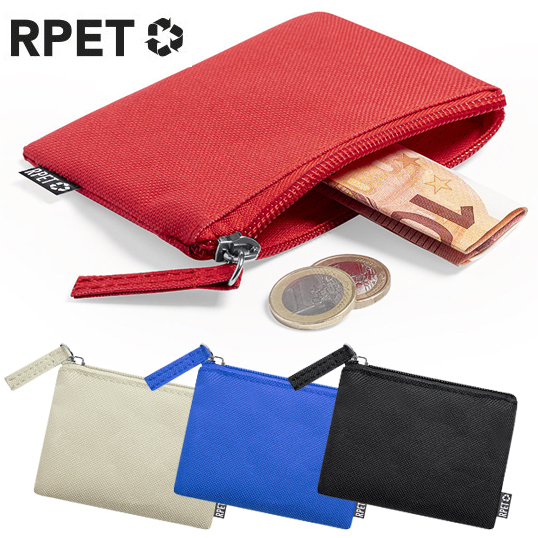 Monedero de línea nature en resistente 600D RPET, elaborado a partir de plástico reciclado para así fomentar la reutilización de residuos plásticos y contribuir a la sostenibilidad del planeta. Con cierre de cremallera y tirador a juego. Disponible en variada gama de colores, con distintivo RPET en etiqueta exterior.