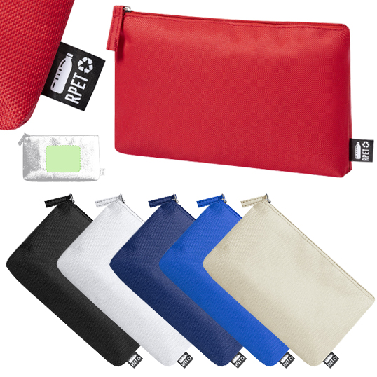 Neceser de línea nature en resistente 600D RPET, elaborado a partir de plástico reciclado para así fomentar la reutilización de residuos plásticos y contribuir a la sostenibilidad del planeta. Con cierre de cremallera y tirador a juego. Disponible en variada gama de colores, con distintivo RPET en etiqueta exterior.