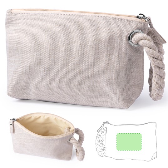 Portatodo multiusos en suave combinación de algodón y poliéster en tonos crudos naturales. Cremallera a juego, con práctica asa trenzada, argolla de refuerzo metálica y suave forro interior en color crudo. Con Forro Interior