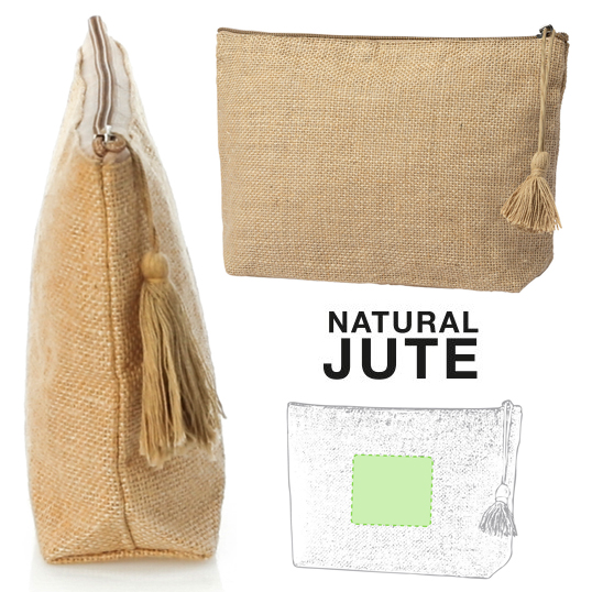 Neceser de línea nature en yute laminado, con cierre de cremallera y tirador súper cuqui en algodón.