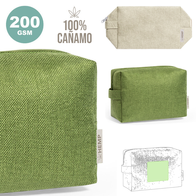 Neceser de línea nature, fabricado en 100% tela de cáñamo de 200g/m2 obtenida de la planta Cannabis, cuyos procesos tanto de cultivo como de obtención de fibras son respetuosos con el medio ambiente, dando como resultado un tejido de gran resistencia, de origen natural y sostenible. Compartimento principal con cierre de cremallera y tirador a juego, con asa de transporte. Distintivo HEMP en etiqueta.