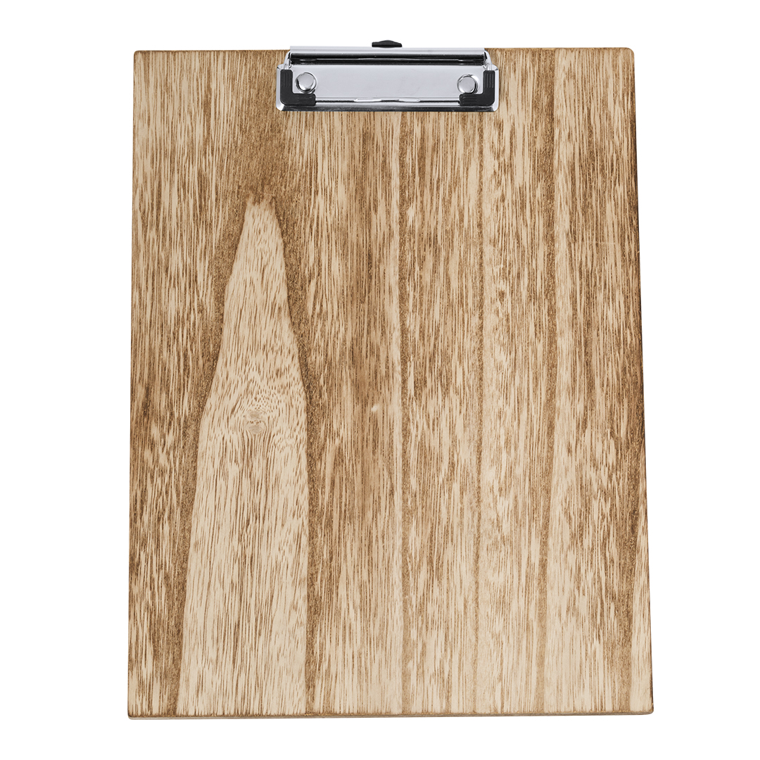 Excelente organizador en suave madera tamaño A4. Con resistente pinza para documentación y presentada individualmente en caja de diseño kraft.