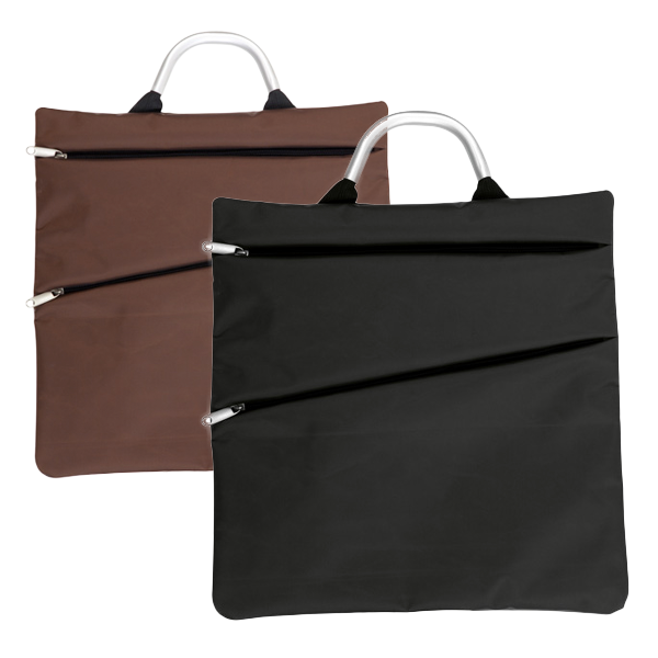 Práctico maletín portadocumentos de elegante acabado en microfibra y con asas reforzadas de aluminio. Con prácticos bolsillos frontales a juego y originales tiradores.
