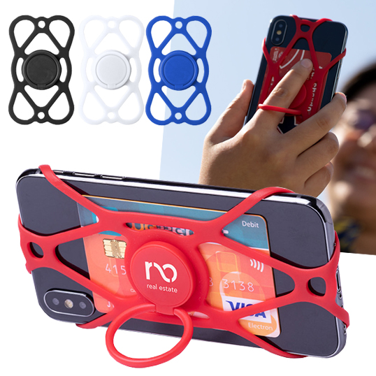 Práctico protector soporte 4 en 1, compatible con todos los modelos de smartphone. En resistente silicona y ABS, con función de paragolpes, anillo 360º para selfies, tarjetero y soporte. Disponible en variada gama de colores.