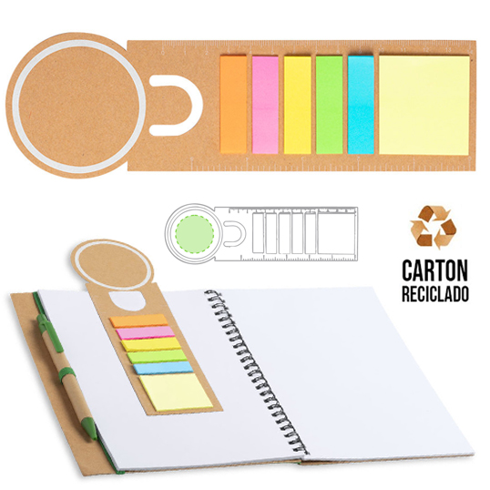 Regla marcapáginas de línea nature. En cartón reciclado y con amplia superficie de marcaje. Incluye 15 notas adhesivas medianas y 75 mini notas ahesivas 13 cm y 5"". 15 Notas Adhesivas 4 x 4,5 cm. 75 Mininotas Adhesivas 1,2 x 4,5 cm