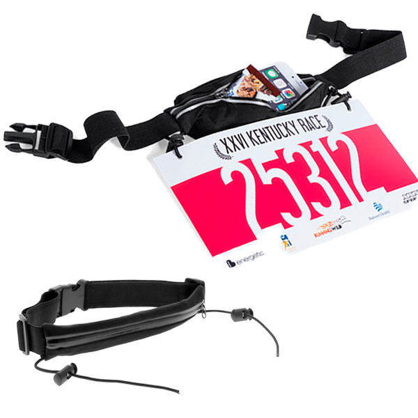 Riñonera portadorsal de alta calidad y resistente a las salpicaduras de agua en spandex de suave acabado con cremallera en gris. Diseñada para actividades deportivas y de ocio. Elásticos para dorsal con accesorios de ajuste y cintura elástica con cierre de clic ajustable.
